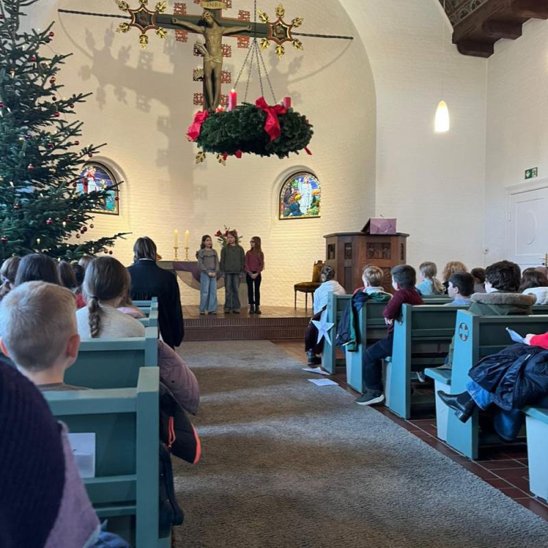 Am letzten Schultag vor den Weihnachtsferien fanden in der Kirche zum Guten Hirten zwei Weihnachtsandachten unter der Leitung von Herrn Götze, dem Vikar der Kompass-Kirchengemeinde, für unsere Schule statt.